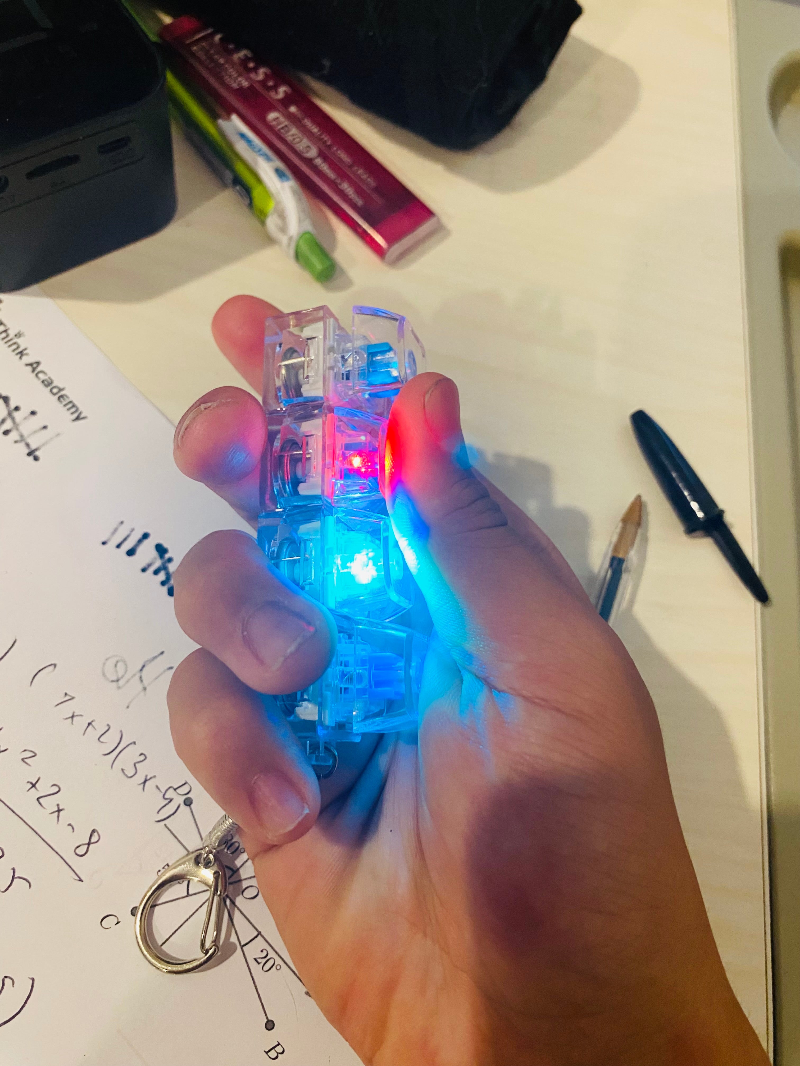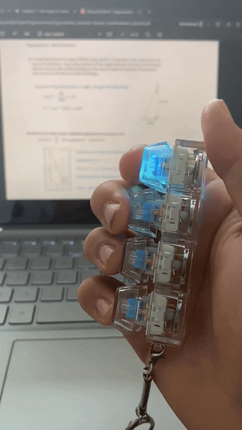 FidgiKey™ 2.0 features four authentic mechanical keyboard switches, offering a distinct tactile bump and satisfying click sound, similar to a high-quality mechanical keyboard.